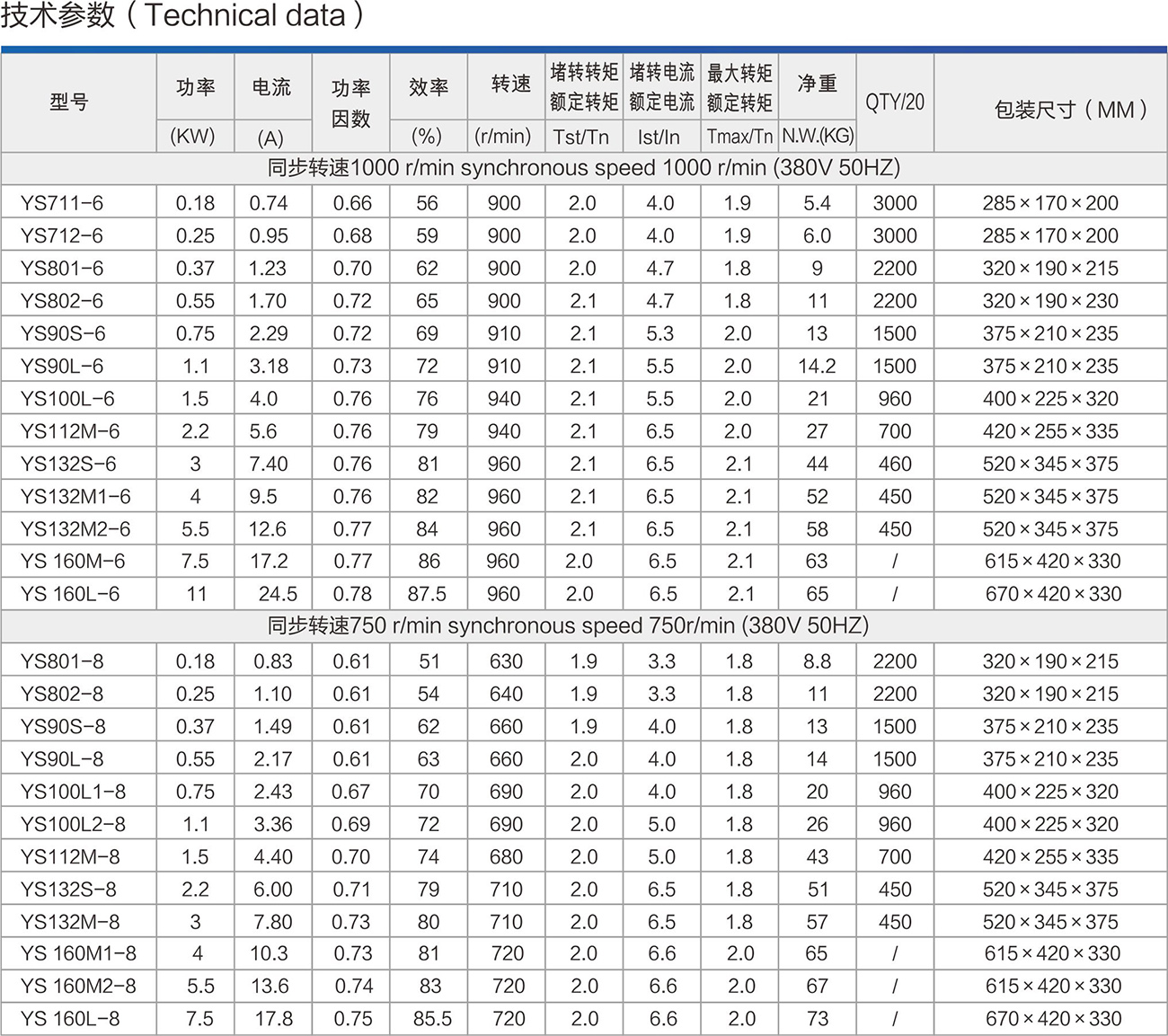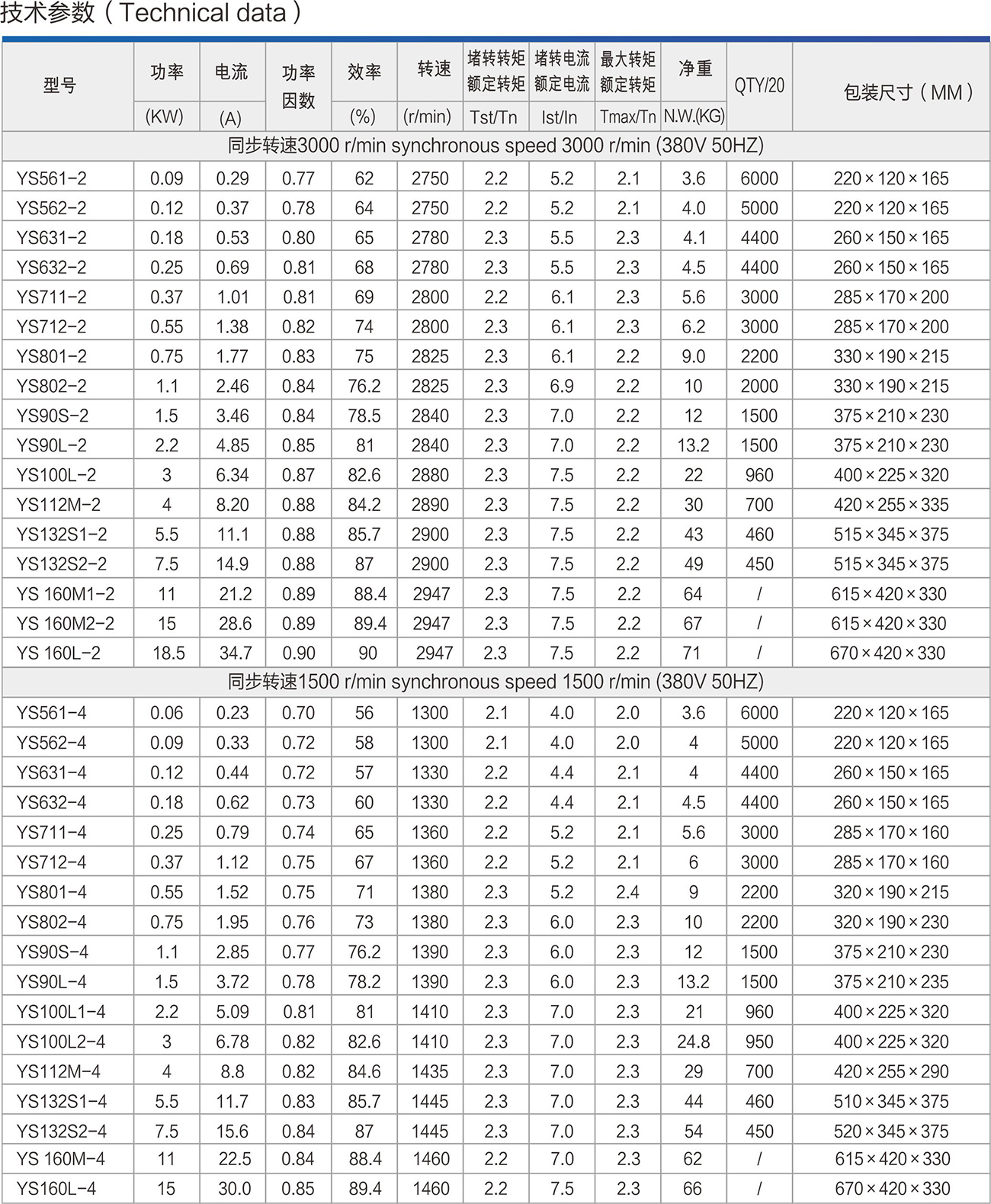 YS系列電動機(jī)適合于各類電機(jī)設(shè)備上。